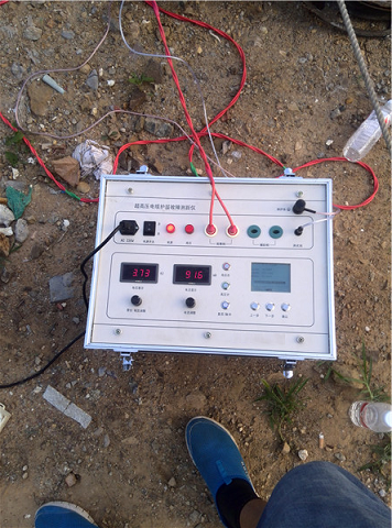 經(jīng)過測距設(shè)備檢測故障位置距離測試端30米。設(shè)備再次加壓,在故障位置明顯看到有燃弧現(xiàn)象,定位完畢。
