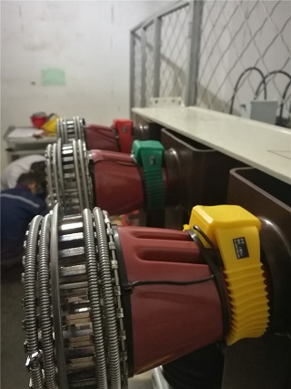 9月17日下午到達(dá)**能源公司,這個(gè)測溫系統(tǒng)需要安裝的有180個(gè)測溫點(diǎn),2臺(tái)RM-C3000G接收主機(jī)和 1臺(tái)RM-C3000E接收主機(jī)。本次工程訂貨安裝非常緊急,客戶要求所有測溫點(diǎn)必須在19日0時(shí)前安裝完成。其中有5個(gè)柜子特別緊急必須在17日21時(shí)點(diǎn)之前必須完成。根據(jù)客戶要求進(jìn)行柜號(hào)排列,并做記錄,然后按順序找出10KV配電室這5個(gè)開關(guān)柜對(duì)應(yīng)的測溫點(diǎn)序號(hào)進(jìn)行安裝。小車推出后發(fā)現(xiàn)觸頭為倒錐形,合金片收緊困難,溫度探頭難以安裝,施工人員克服種種困難,保質(zhì)保量并提前2小時(shí)完成,主機(jī)全部接收到已安裝探頭的溫度數(shù)據(jù)。